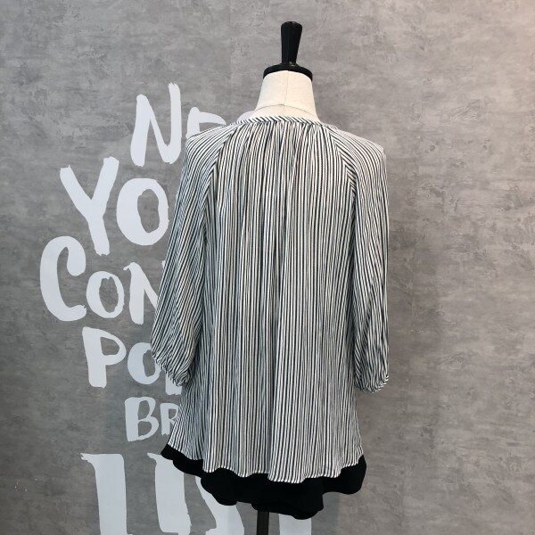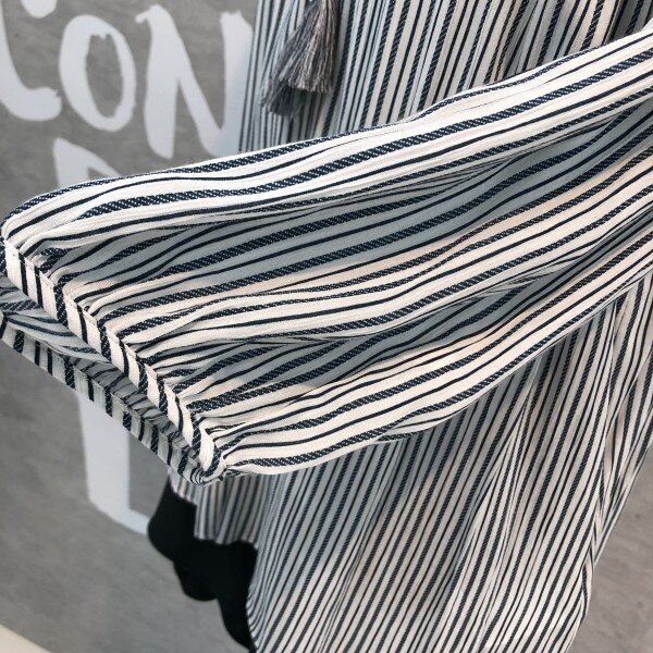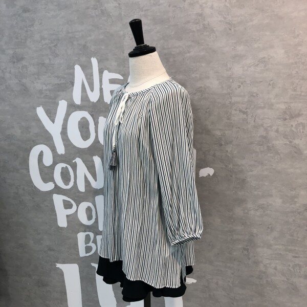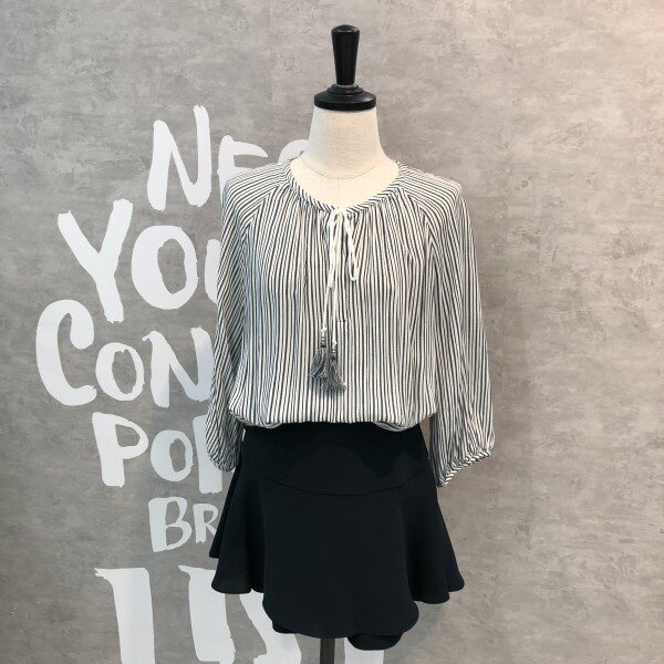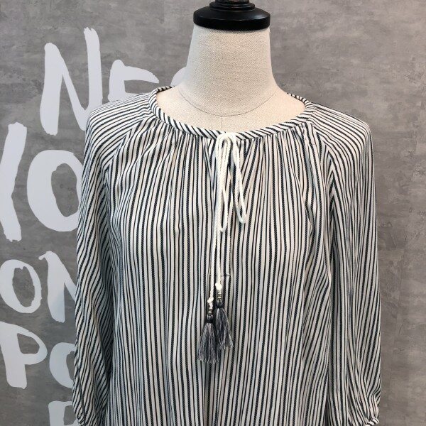 에스닉한 스타일에 스트라이프 수술포인트가 고급스럽고 여성스러운 분위기로 편하게입기 좋은 블라우스입니다