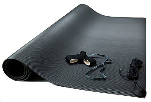 Bertech ESD PVC Floor Runner Kit with a Heel Grounder and Grounding Cord, 3' Wide x 5' Long x 0.125" Thick, Gray (Made in USA)