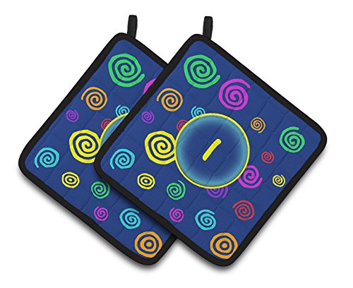 Caroline's Treasures Letter I Initial Monogram - Blue Swirls Pair of Pot Holders CJ1011-IPTHD, 7.5HX7.5W, Multicolor
