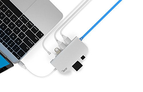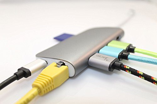 Features – 1. HDMI output supports 4k@30 Hz. 2. 3x USB 3.0 ports (5 GBPS). 3. Gigabit Ethernet port. 4. USB-C input for charging. 5. SD & micro SD media inputs. Juiced Systems BizHUB is the most advanced USB-C travel adapter. With the ability of empowering your USB-C device's full capabilities. You can easily plug n play the adapter to your USB-C device and extend an additional display via the 4k enabled HDMI port. Eliminate the bad Wi-Fi lag with a gigabit Ethernet input. Add multiple peripherals simultaneously to your device utilizing the three USB 3.0 ports. Read and write data to your SD and micro SD memory cards on the go. Always keep your device charged with the USB-C power delivery input. The aluminum designed body keeps the adapter durable to withstand travel. The compact size of the adapter makes it a convenient travel companion when on the go.Feature