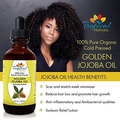 Tropical Holistic Organic Cold Pressed Pure Jojoba Oil, Best for Hair/Face, Skin/Food Grade/Finest Carrier, 4 oz.