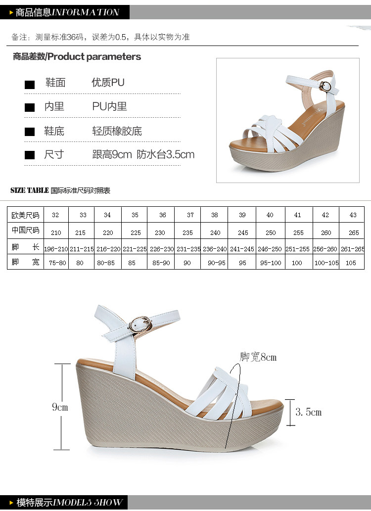 - 流行元素: 镂空 搭扣 浅口 皮带装饰 坡跟 松糕跟 防水台 细带组合 皮带扣