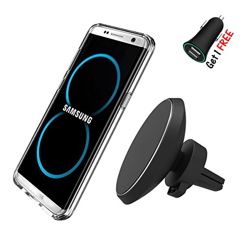 【Magnetic Car Mount】- Super strong 14 pieces coating permanent magnets lying around the charging pad, 360°rotation air vent clamp holder providing flexible choice of viewing your phone while driving.