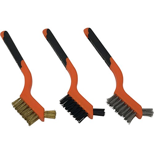 - Set includes: 4 pcs. - stainless steel brush suitable for paint, rust, grime and tough stains removal., 4 pcs. - brass brush suitable for dirt and grime removal and cleaning metal parts without producing sparks. and 4 pcs. - nylon brush suitable for interior and exterior auto detailing and removal, delicate cleaning.