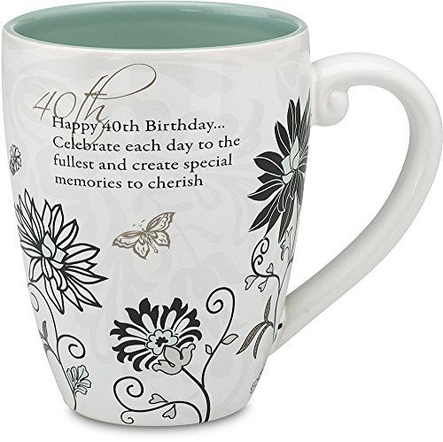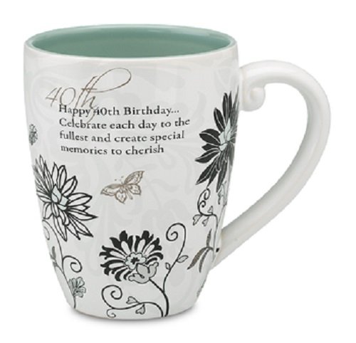 Studio : Pavilion Publisher : Pavilion Product Description Mark My Words...extraordinary inspiration for special people and occasions. A wonderful collection of mugs feature elegant floral designs with gorgeous flowing vines and leaves. Mark My Words items integrate a layered look of textured colorful effects, in palettes that are fresh and modern. The beaded handle on the mugs are architecturally embossed to add a designer look. Mark My Words...you'll love it! The ceramic mug is 4.75" tall and holds 17 oz. and is dishwasher and microwave safe. The message reads: Happy 40th Birthday... Celebrate each day to the fullest and create special memories to cherish.
