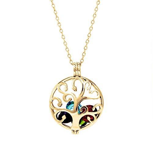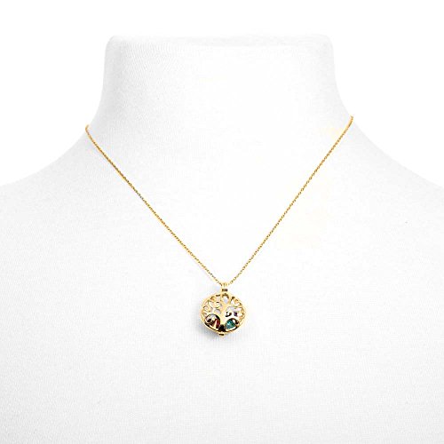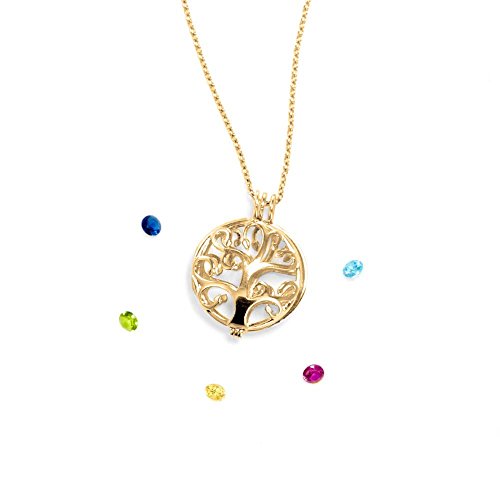 Create a custom gift with a Gold Plated Personalized 6mm Round Simulated Birthstone Family Tree Caged Locket to place the colored birth month stones of loved ones inside the locket. With a unique open family tree design, this caged locket can hold up to five 6mm round cz stones inside and clasps tightly shut to create a colorful family pendant. Attached to a 16 inch rolo chain with a 2 inch extender, the round shaped family locket charm is only 3/4 inch in size. Makes as touching custom gift for mom or grandma on Mother's Day, Christmas or Birthday!Feature