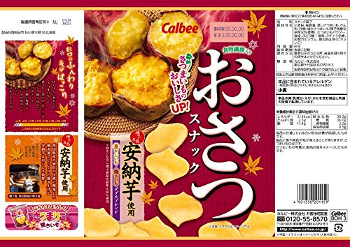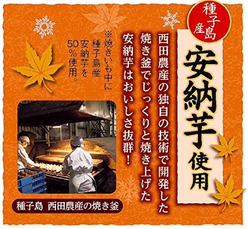 原材料:小麦粉、植物油、蒸しさつまいも、でん粉、砂糖、焼きさつまいも(種子島産安納芋50%使用)、さつまいもパウダー、食塩、ぶどう糖/香料、クチナシ色素、炭酸カルシウム、酸化防止剤(ビタミンC)