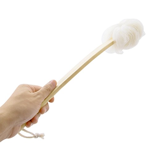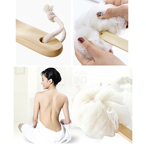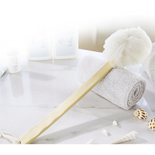 Pretty See Loofah Back Scrubber Exfoliating Shower Body Brush Luffa Sponge Scrubber with Long Wooden Handle