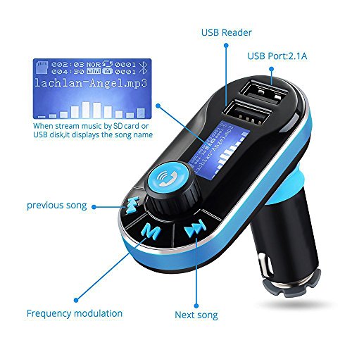 This is Bluetooth car FM transmitter, which allows you to play music from your phone, USB Drives and SD card. With built-in mic, it also can make hands-free calling for more safe driving on the road. Two USB charging ports for more convenient to charge your phone and tablet .