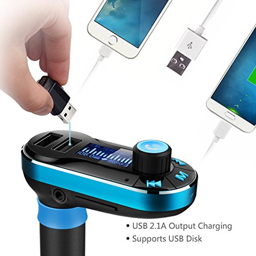 REMOTE CONTROL & MUSIC PLAYING. Support with remote control for the FM Transmitter, everyone in car can control it freely. Besides,the car FM transmitter allows you to play music from your phone to car stereo system via Bluetooth. MP3/WMA format would be supported.