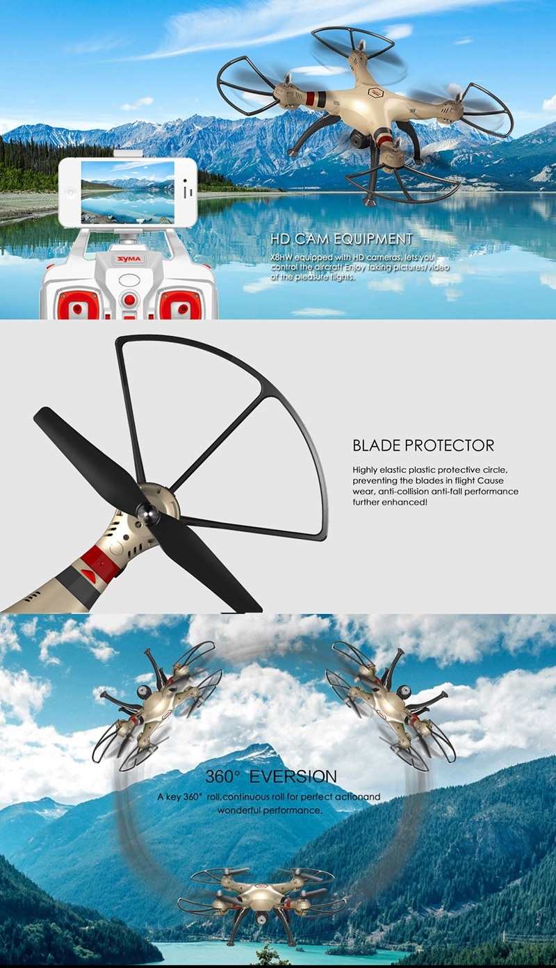 Features: - With WiFi camera, can transmit the live image to your phone. - With headless mode function. - The 6-axis system allows the quad to be hand launched. - 6-Axis gyro quad-rotorcraft flight, strong stability,can easily implement various flight movements, stronger wind resistance, easier to control. - 2.4 technology adopted for anti-interference.even more than one quadcopter is flying at the same time they will not interfere with each other. - The quadcopter can fly both indoor and outdoor.Including 4CH digital proportional RC system. - Function: Video/Photograph