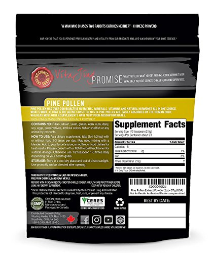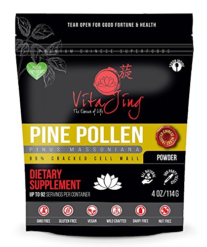 -. Title : Organic Pine Pollen Powder Extract (2oz/57gm) Raw Form, Pure Wild Harvested, 99 Percent Broken Cell Wall for Optimal Absorption and Potency (Up to 46 Servings)