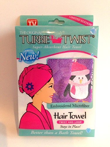 Turbie Twist As Seen on TV Microfiber Super Absorbent Hair Towel Purple Emroidered Penguins by Turbie