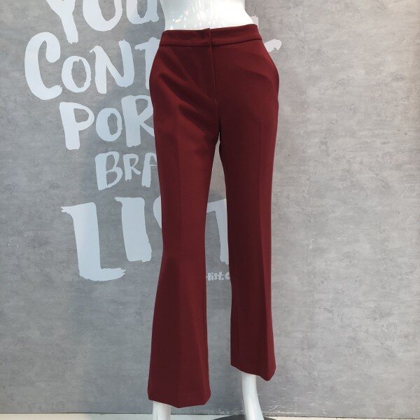 뒷중심 절개 디테일이 포인트이며 미니플레어핏 실루엣이 유니크한 팬츠입니다