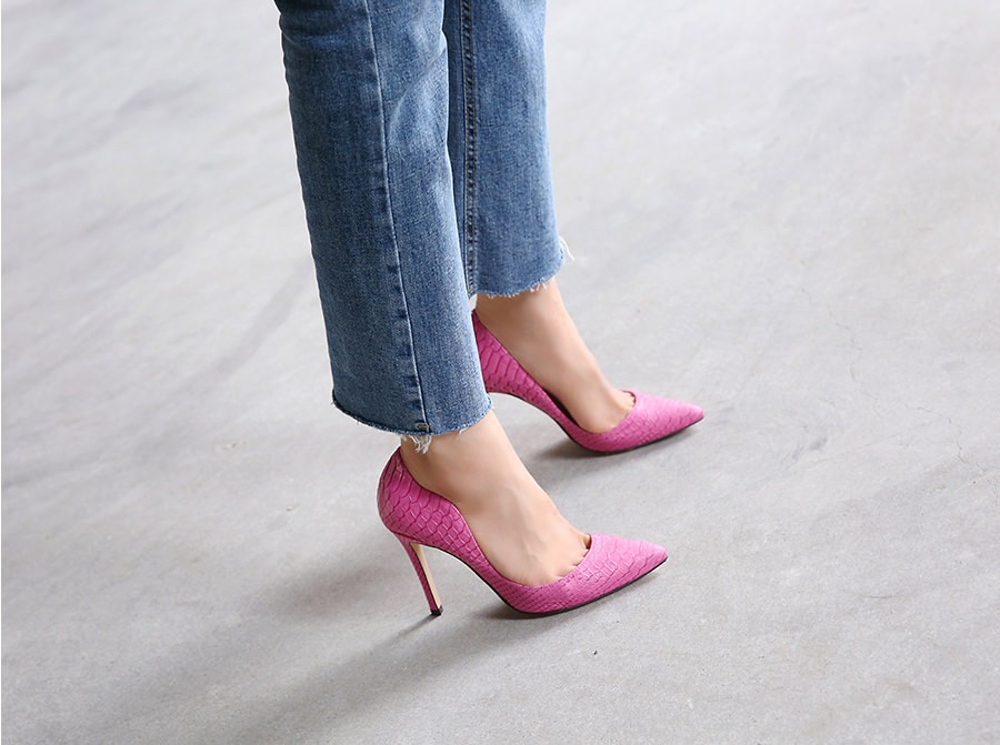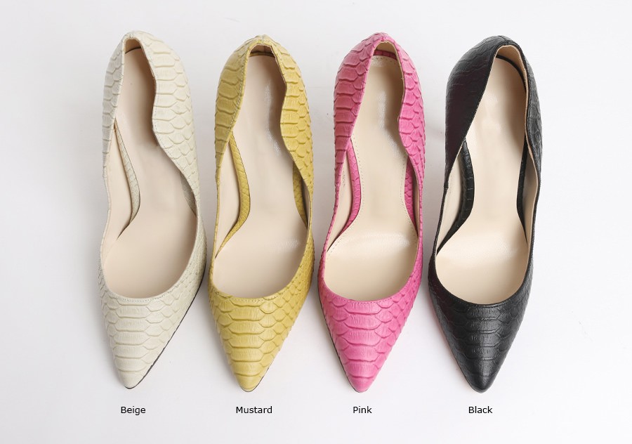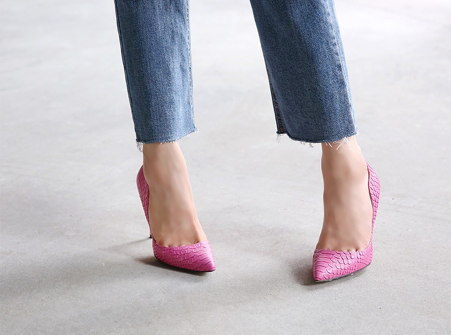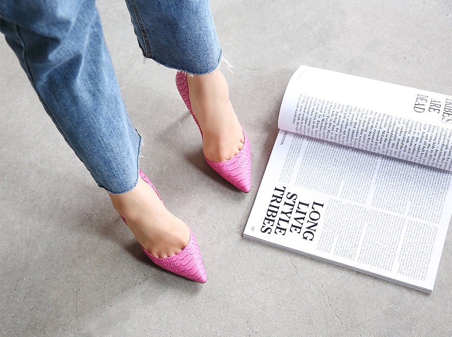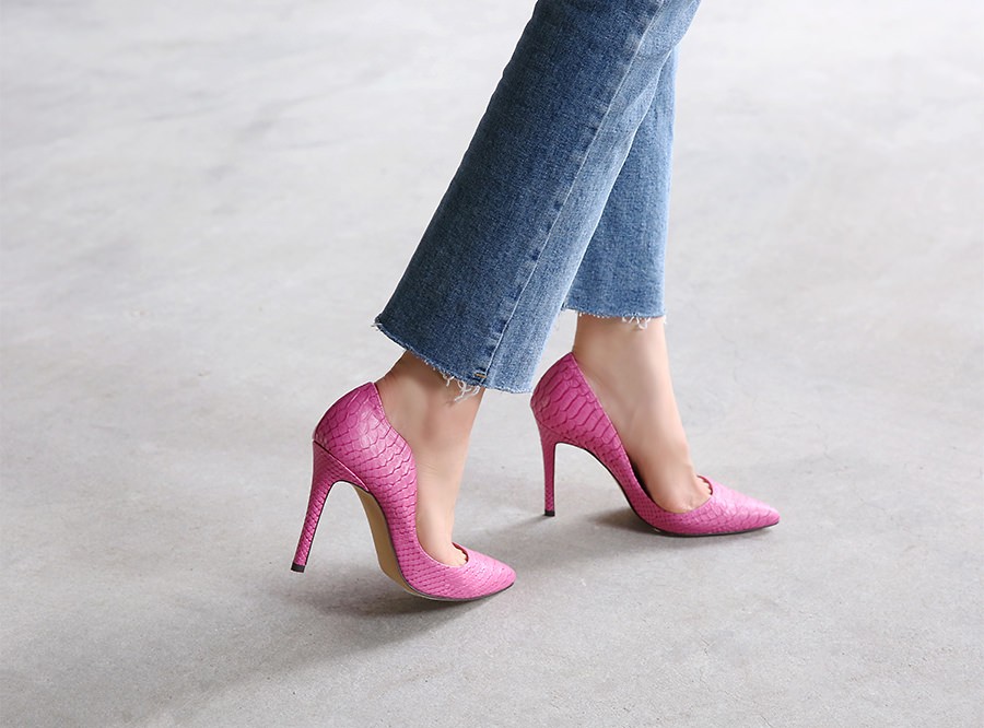 レディースファッションの婦人靴(レディースシューズ)の分野でパンプスは代表的なカテゴリー。スニーカー、ミュール、サンダルなど数かあるレディスファッションシューズの中でも最もスタンダードな種類で痛くないフラット(ぺたんこ)やピンヒール、ローヒール、オープントゥ、ストラップ、太ヒール、厚底、ポインテッドトゥ、バイカラー、リボン付きや、ひょう柄、メッシュなど種類や形状も多く存在し最も女性らしさを引き立て世界で多くの女性に愛されています。