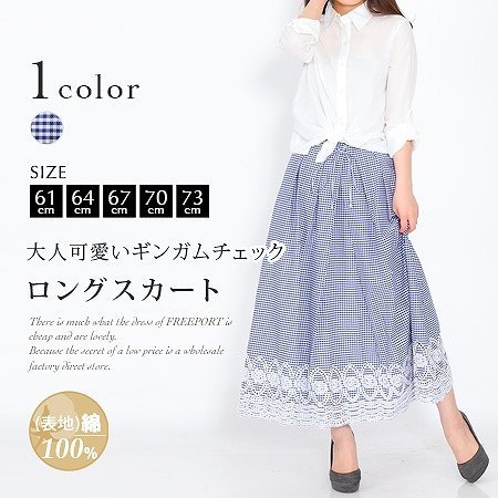 -. Title : Girls Fashion(ヤスカワ) 【綿100%】 ロングスカート レディース ボトムス マキシ丈 ギンガムチェック 裾レース(19323)