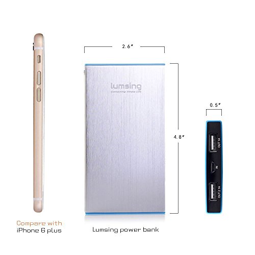 Lumsing Portable Charger Power Bank for Smartphones Tablets(6000mAh Li-Polymer silver)