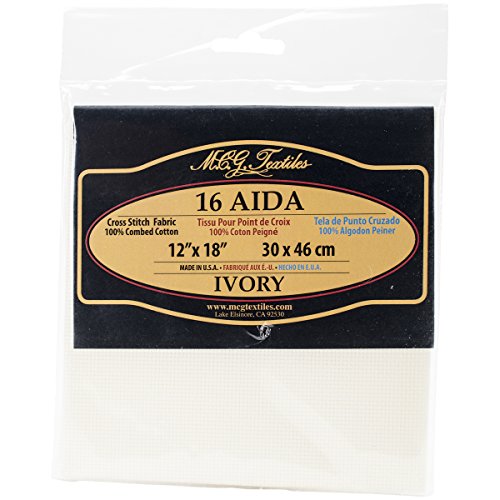 MCG Textiles Aida 12x18 Fabric Woven Cloth, 16 Count, Ivory