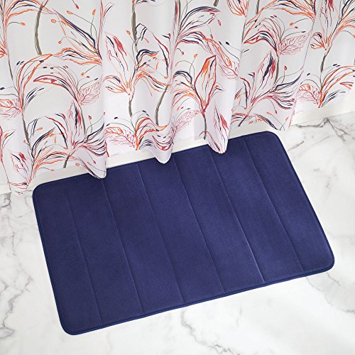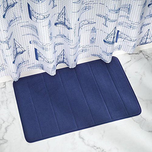 mDesign Memory Foam Non-Slip Bathroom Mat for Bathroom Vanity, Bathtub - 34" x 21", Navy