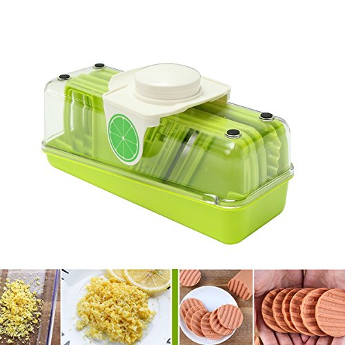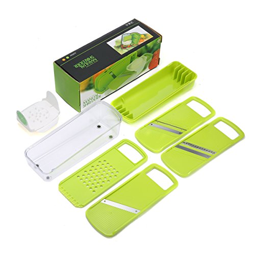 Attached Container: The multi-function slicer equipped with a food container for catching sliced and grated food ,easy to transfer or store food after cutting. Perfectly replacing the Cutting board!