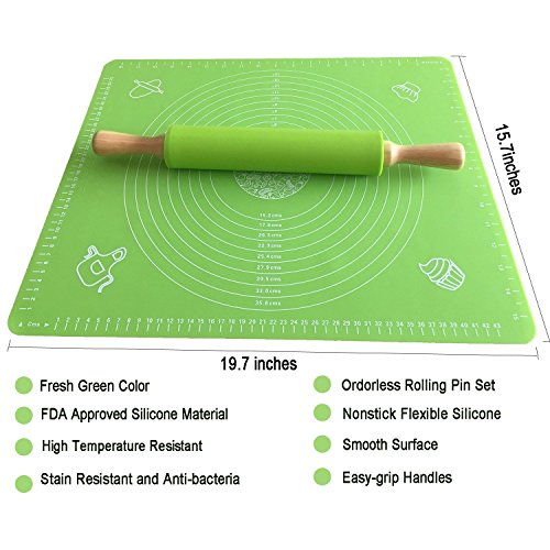 - PERFECT SIZE AND WEIGHT ENABLE SMOOTH ROLLING: The Nonstick Silicone Rolling Pin: 16.9 Inches in Length, weight: 360g/0.8LB, when using, you will definitely believe it is the best size and strength for rolling handle feeling, pastry sheet size: 15.7 X 19.7 Inches, Perfect size for our kitchen countertops. Silicone tie rope: 6.3 Inches. Proper to tie up some food bag.
