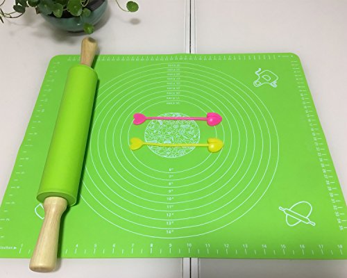 - FUNCTIONAL DESIGN, NONSTICK TECHNOLOGY. Multi-purpose silicone pastry mat with measurements enable you better control the dough, form a pie or pizza crust from scratch, or roll out various pastries! Use less effort for better results with non-stick technology, the mat keeps your workstation cleaner and saves you from having to scrape dough or fondant off of your precious kitchen countertops.