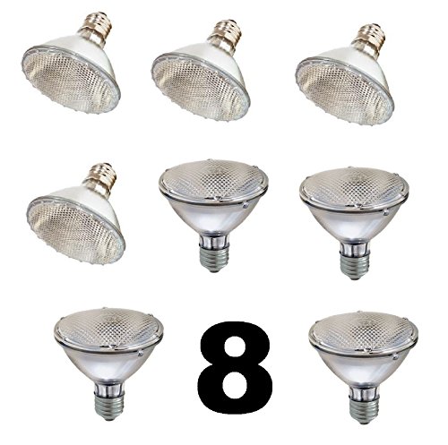 NEW and IMPROVED SleekLighting Halogen 60W(75W replacement) Par30, Short Neck, Narrow Flood Bulb (30 Degrees), E26 Base, 110-130v, 2750k - 1100 Lumens, Pack of 8