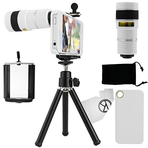 -. Binding : Wireless Phone Accessory -. Brand : CamKix® -. Feature : Get the most out of your iPhone photography with this handy kit. / Powerful 8x zoom lets you to clearly focus on distant objects. / Mini tripod features extendable/retractable legs for more precise positioning. / The hard case allows you to easily attach the lens with no need for damaging adhesives. / The universal phone holder allows you to mount a range of different smart phones on the tripod. -. Label : CAMKIX® -. Manufacturer : CAMKIX® -. PackageQuantity : 1 -. ProductGroup : Wireless -. ProductTypeName : WIRELESS_ACCESSORY -. Publisher : CAMKIX® -. Studio : CAMKIX® -. Title : iPhone 4/4S Camera Lens Kit including 8x Telephoto Lens / Mini Tripod / Universal Phone Holder / Hard Case for iPhone 4 or 4S / Velvet Phone Bag / CamKix Microfiber Cleaning Cloth - Awesome Accessories and Attachments for Your Apple iPhone 4/4S Camera