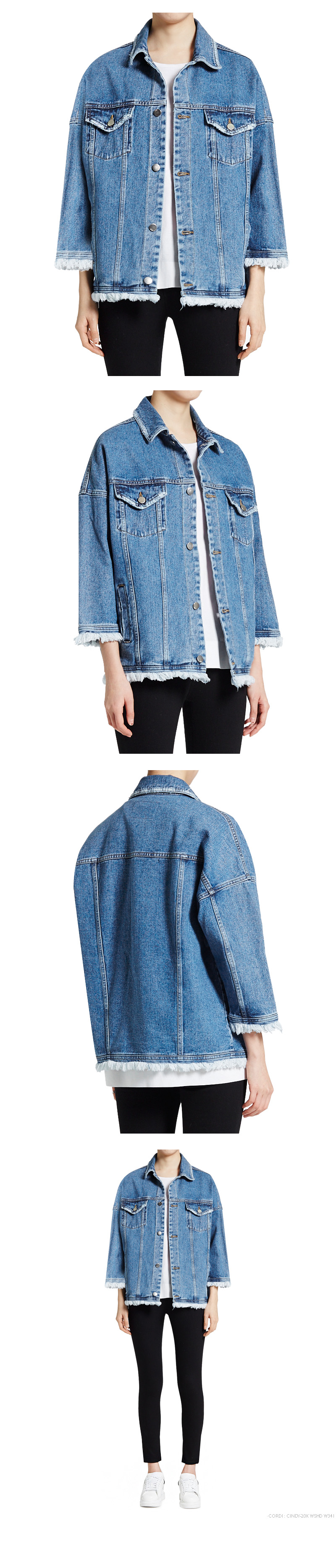 | -밝은 인디고 칼라 DENIM JACKET -데미지 워싱으로 빈티지하게 표현 -소매단과 밑단에 수술푸는 디테일을 사용 -오버사이즈 핏으로 디자인, 난스판원단으로 탄탄한 핏 -맞막 워싱 시 형광처리를 하여 선명한 데님컬러 -COTTON 100% -13 OZ | |