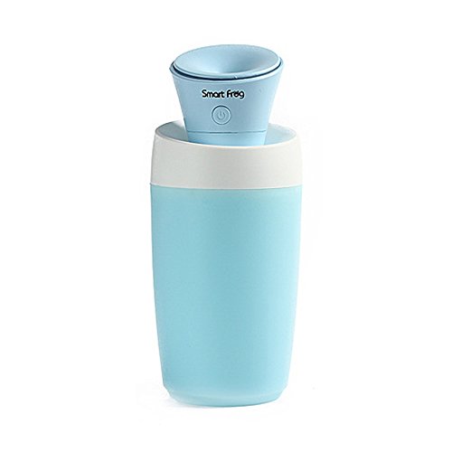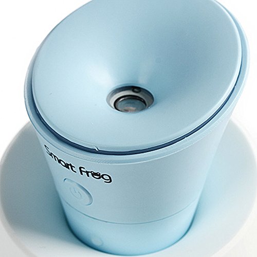 Smart Frog Water Lily Portable Mini USB Car Cool Mist Humidifier for Car Travel and Home With bottle (blue)