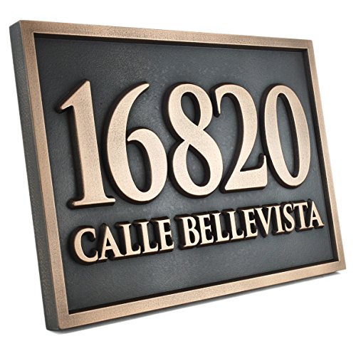 -. Feature : Handcrafted and made in the USA with products from the USA. Custom made for you. / Comes with keyhole style mounting and screws. Template is also included for easy installation by you / Made of 30 pound HDU (type of plastic) that won't warp, rot or promote insects and is fine outside. / Coated with a metal coating that won't flake or peel. Looks like cast but at fraction of the P.R.Ice. / Size is 17 x 12 x 1 inches. Lettering will be raised and plaque will be metal coated in our Bronze finish. Any questions please EMAIL us. Thank you for your business!