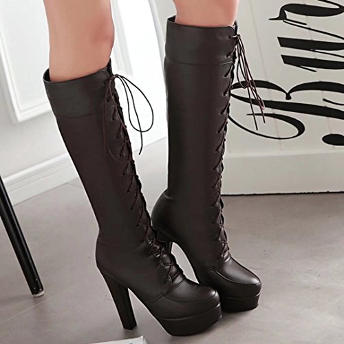 * Heel Height:12cm * Shaft: 39cm * Boots opening: 36cm * Platform Height:3.5cm * Material: PU * Inner Material: Suede * Sole Material:Rubber * Color: Black, Brown * Toe Type: Round Toe * Closure Type: Lace-up * Heel Type: Block Heel * The package will be delivered to you about 7-12 business days. * Please measure the sizes of your feet before you buy this item. If your foot is slightly wider or one of your toes is longer than usual, please choose the larger size. * Q1: What can I do if I have any problems? * A1: Please send email to tell us your problems first,we will reply you in 12 hours(except holiday) and try to find the best solutions,thanks for your trust! * Q2: What can I do if the products have problems? * A2: Please send us email with the problem products picture,which can help us to solve the problem in time! * AIYOUMEI commits to the shoes' design, craftsmanship have a unique study to the Excellent quality of products and timely courtesy of customer service experience, adhering to the customer is God's philosophy.Our product main conclud boots, military style, espadrilles, flat, lace-ups, loafers panties, High heels, plateau, casuals, dress shoes, oxfords and so on.If there are any problems, please feel free to contact us at any time, we are always here to help you. 0 |