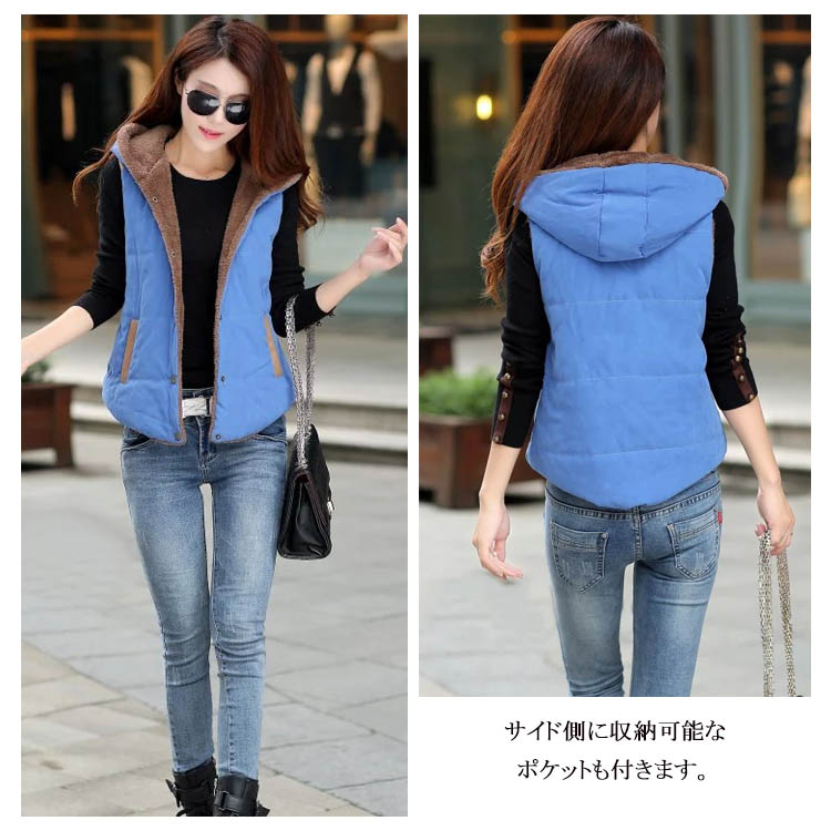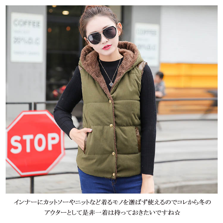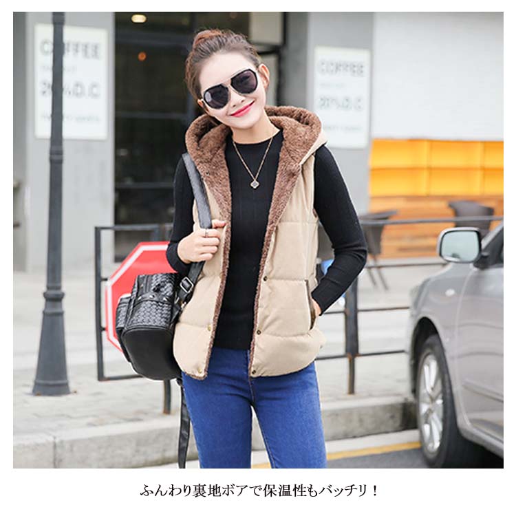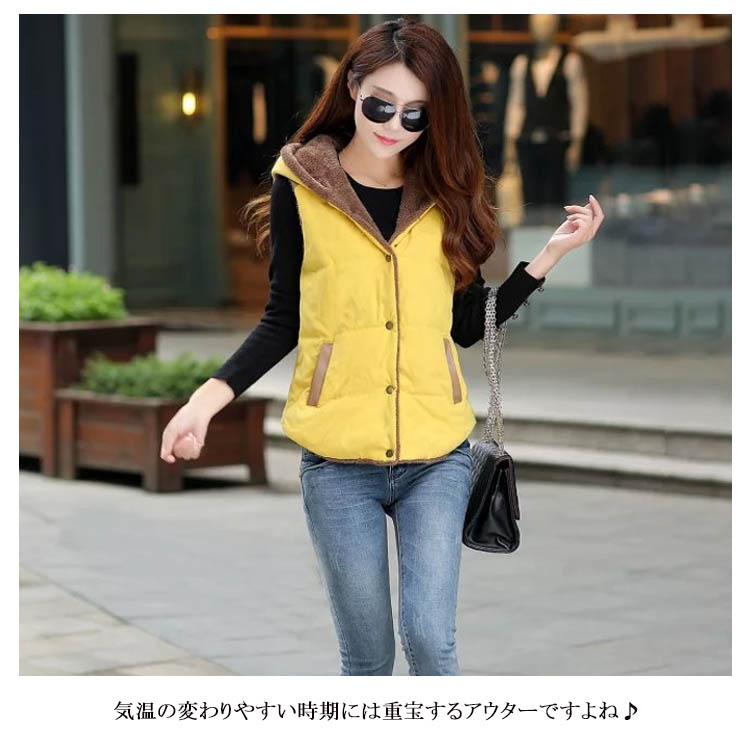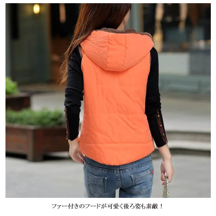 | 人気のカラー展開でカジュアルな中綿ベストが登場しました!ふんわり裏地ボアで保温性もバッチリ!ファー付きのフードが可愛く後ろ姿も素敵!サイド側に収納可能なポケットも付きます。気温の変わりやすい時期には重宝するアウターですよね♪インナーにカットソーやニットなど着るモノを選ばず使えるのでコレから冬のアウターとして是非一着は持っておきたいですね☆ | |