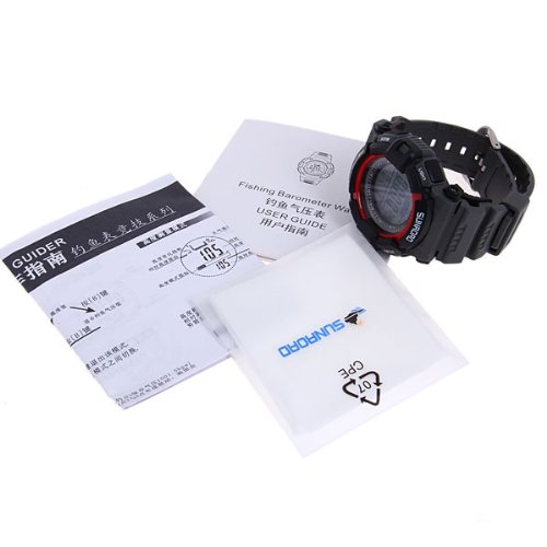 -. Feature : Using super-accuracy barometric sensor from Swiss, with 30m waterproof / Barometric pressure for 6 fishing places can be tracked wherever you are / 24 hours barometric pressure trend chart / Barometric pressure change arrow indication; Incorporate altimeter, barometer, thermometer, weather forecast and time functions etc / Smart reminding automatically when there is a suitable air pressure at fishing place; Contest countdown management;