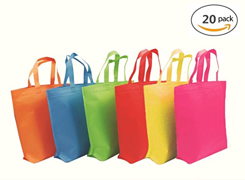 Summerdaisy Set of 20 Gift Bags with Bottom Party Gift Bags Favor Tote Bags Assorted Color Non Woven Polyester Bags with Handles 13" by 10.24" Inches Color Random