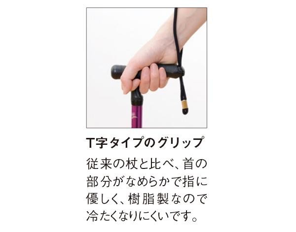 T字タイプのグリップでよりなめらかに握りやすいステッキです。