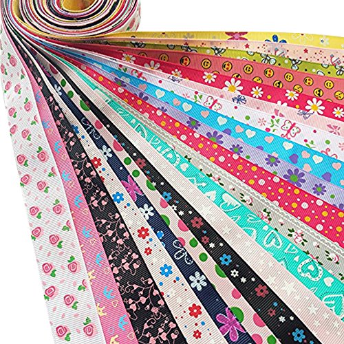 Dandan DIY Assorted 20 Yards Grosgrain Ribbon Bow Daisy Butterfly Cake Love Heart Dots Flower Rose Smile Face Craft DIY Gift Packing hair bow accessory