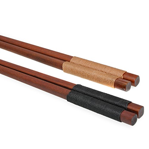 Sealike Vintage Chinese Style Handcrafted Wooden Chopsticks Set of 5 pairs with Stylus Black