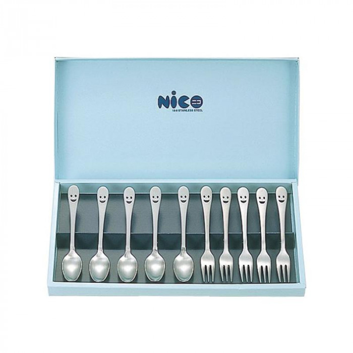 | ニコちゃんの可愛いデザインなので出産の内祝いやお祝いのお返しに好適です。笑顔のカトラリーで、あなたの気持ちがきっと伝わります。 |