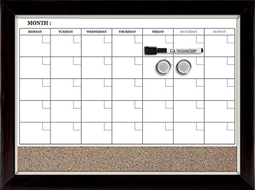 Quartet Magnetic Combination Calendar Board, Dry-Erase and Cork, 17 x 23 Inches, Two-Tone Frame (22476)
