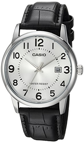 Brand, Seller, or Collection Name:Casio Model number:EAW-MTP-V002L-7BUDF Part Number:MTP+V002L.7B Item Shape:Round Dial window material type:Mineral Display Type:Analog Clasp:Buckle Case material:Stainless steel Case diameter:37 millimeters Case Thickness:10 millimeters Band Material:Stainless steel Band length:standard men's size Band width:0.78 inches Band Color:Black Dial color:Grey Calendar:Date Special features:measures-seconds Movement:Quartz Water resistant depth:100 Feet