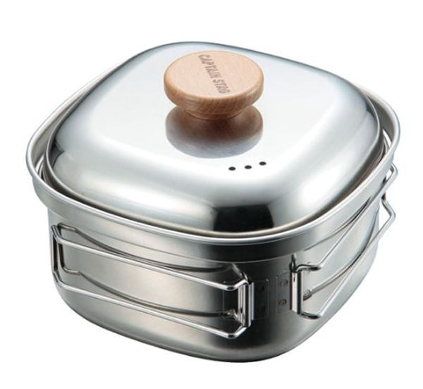 キャンプやトレッキングなど、1~2人用に適したクッカーです。ふたは湯切り穴付き。インスタントラーメン2個を鍋の中に入れて一緒に持ち運べます。 |