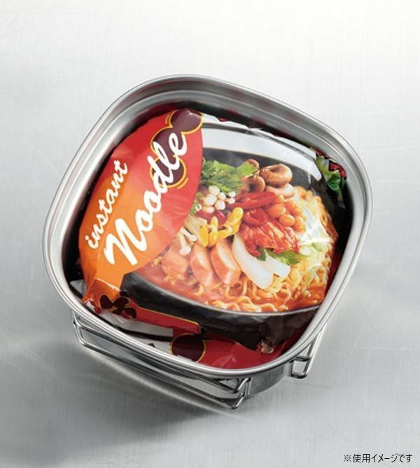 | キャンプやトレッキングなど、1~2人用に適したクッカーです。ふたは湯切り穴付き。インスタントラーメン2個を鍋の中に入れて一緒に持ち運べます。 |