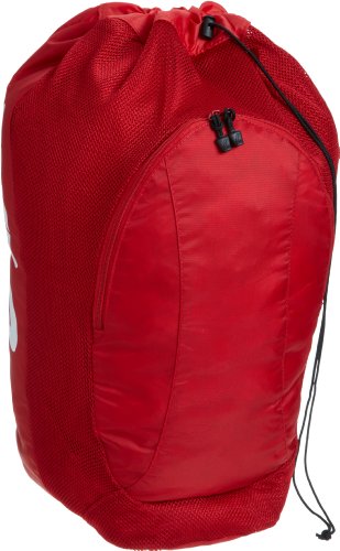 -. Feature : Padded shoulder straps / Versatile carry-all / Mesh side panels for breathability / Drawstring closure and front zippered pocket