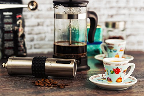 FRESH HOMEMADE COFFEE - Skip the expensive coffee shop drinks and make your own! Indulge in a coffeehouse-like drink with this Manual Coffee Grinder by Oxifame. It's easy to use; With minimal effort you can have your tasty fresh ground coffee in just minutes, without the noise and the hassle of an electric machine.
