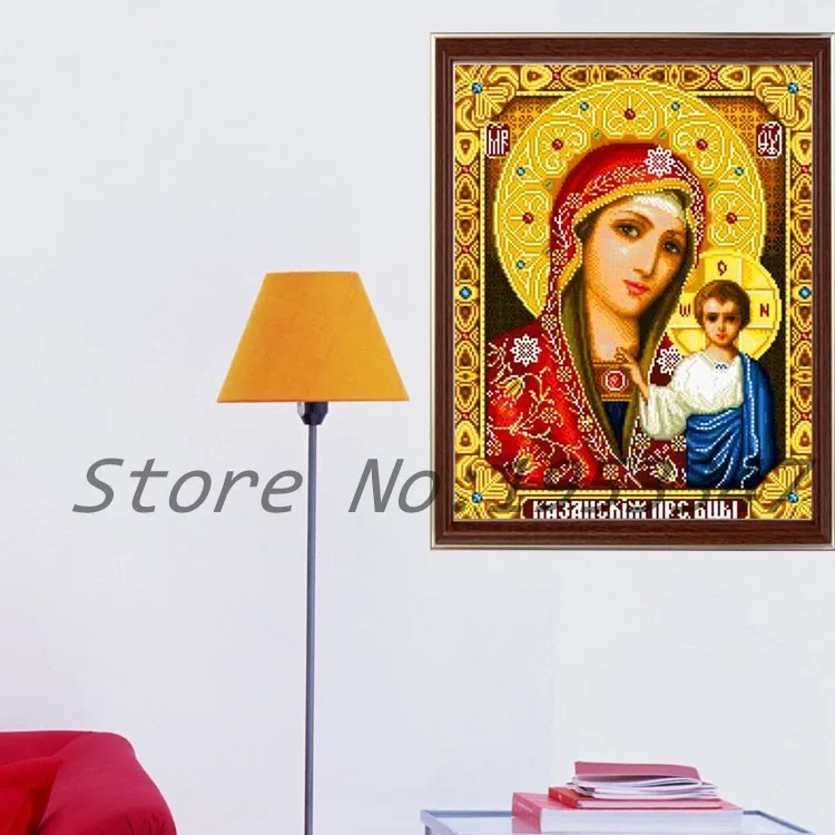 Needlework DIY Cross Stitch AB Drill Diamond Painting 5D Diamond Embroidery Jesus Holy Mother Mosaic Round Rhinestone Stitch Home