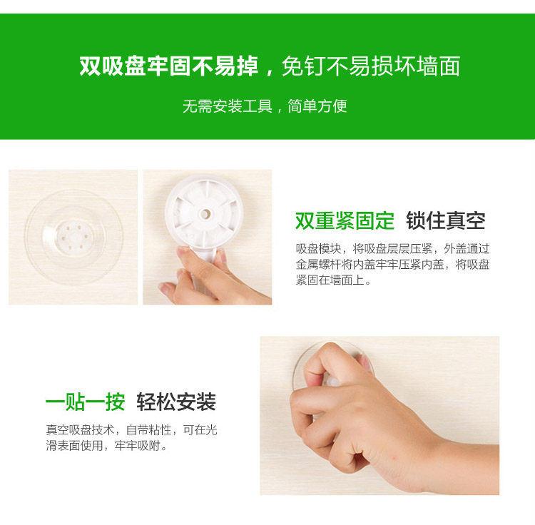 ABS environmentally friendly materials, double suction cups buckle more stable, strong suction, load-bearing capacity, not easy to fall, bid farewell to messy, incorporated regular order.
