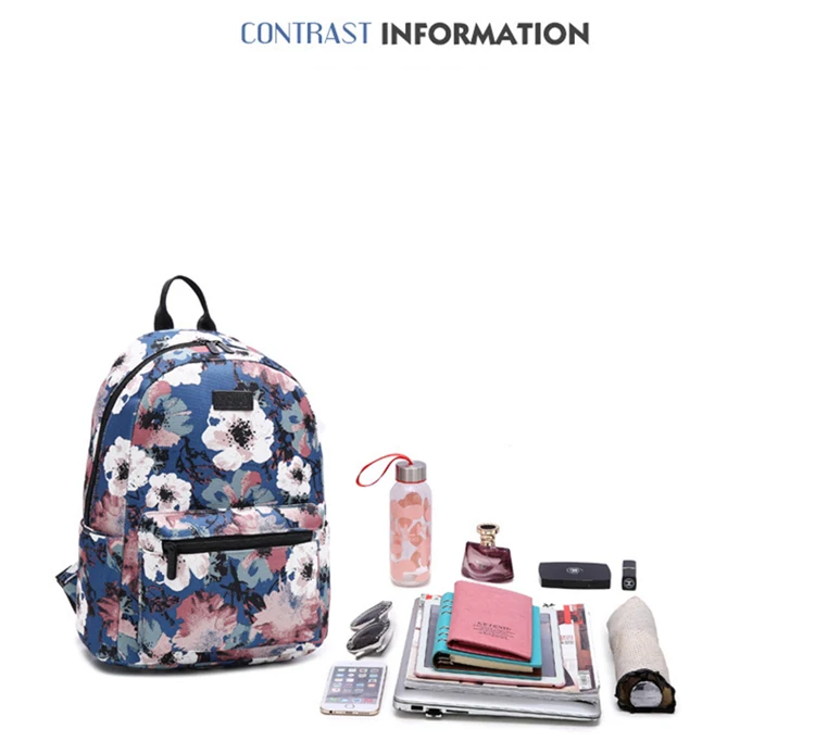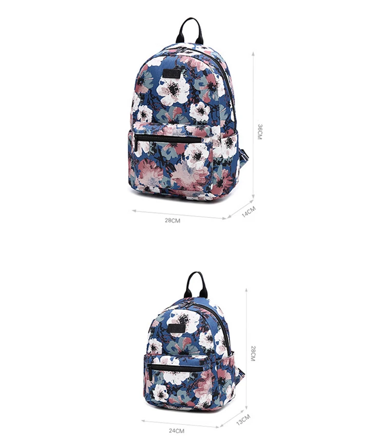 design:Simple Canvas Women Backpack Flower Floral Printing School Bags