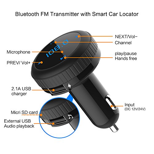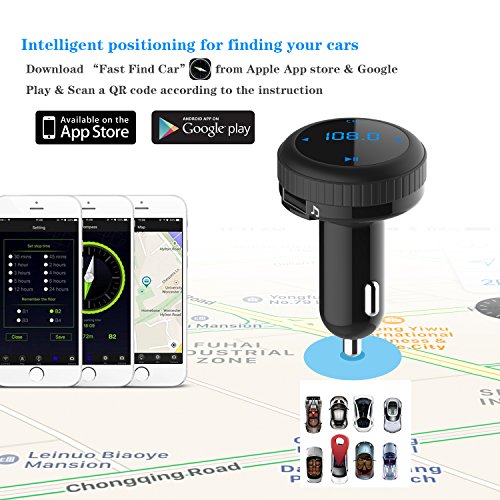 OMOTON HIFI Bluetooth FM transmitter [Dual USB car charger][32G SD/TF card music control][Hands-free calling][ Smart Car locator] for iPhone/Samsung /Motorola/LG/Nexus Phones/Tablets Mp3 Mp4 Player