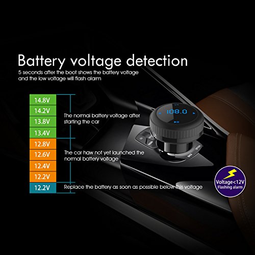 【Support car Voltage Detection】 Car battery voltage level will be detected and displayed on LCD once the car starts; When car voltage is less than 12V, a warning with flashing number will be displayed.
